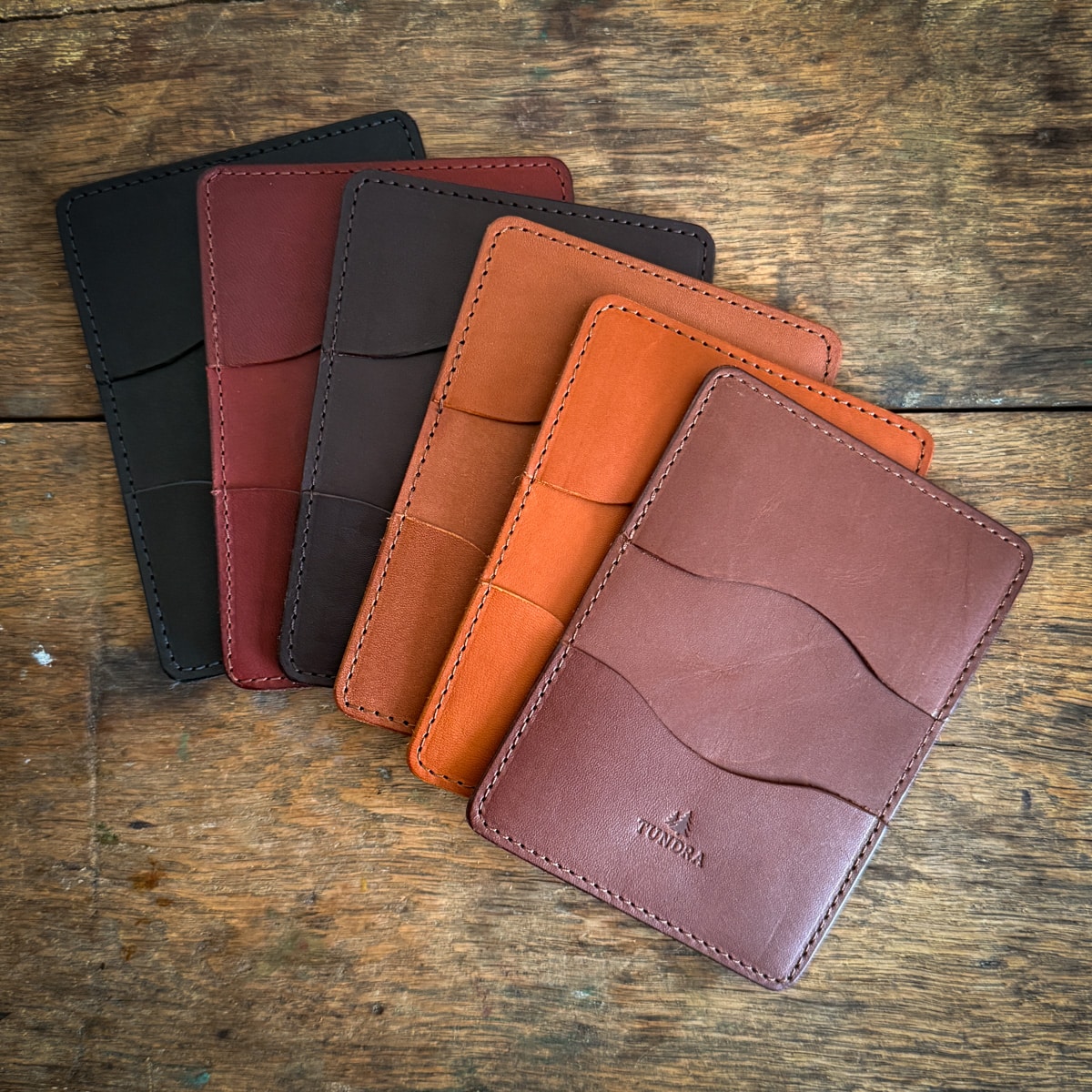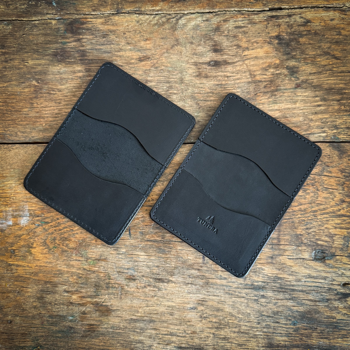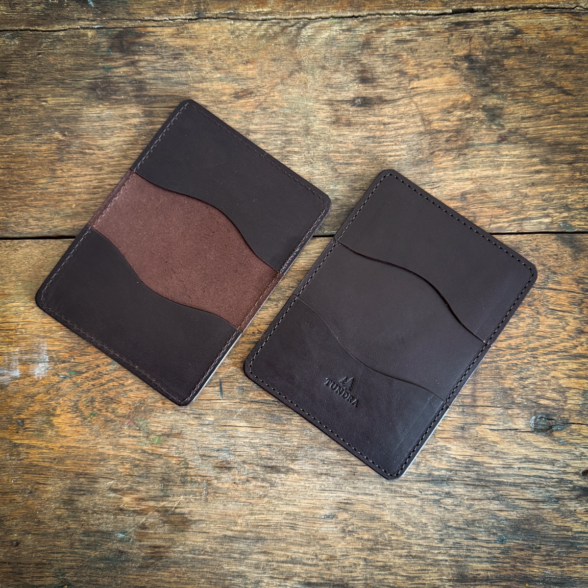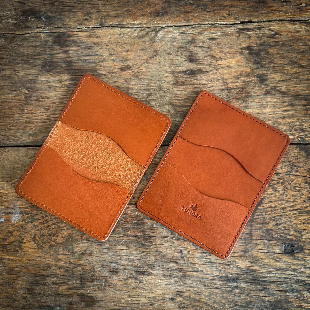 Meet our Four-Pocket Bridle Card Wallet — a sleek everyday carry built for simplicity, durability, and effortless function. Handcrafted in-house from 3/4 oz bridle leather, it features two pockets inside and two on the outside, giving you quick access to the cards you reach for most while keeping the rest secure within.
