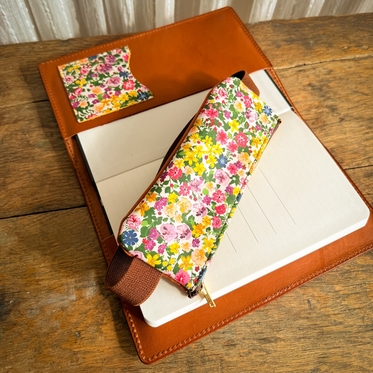 A durable elastic wraps around the front cover, keeping everything securely together whether you’re travelling, working, or sketching on the go. Inside the front flap, a coordinating card pocket adds a simple, practical touch of organization.