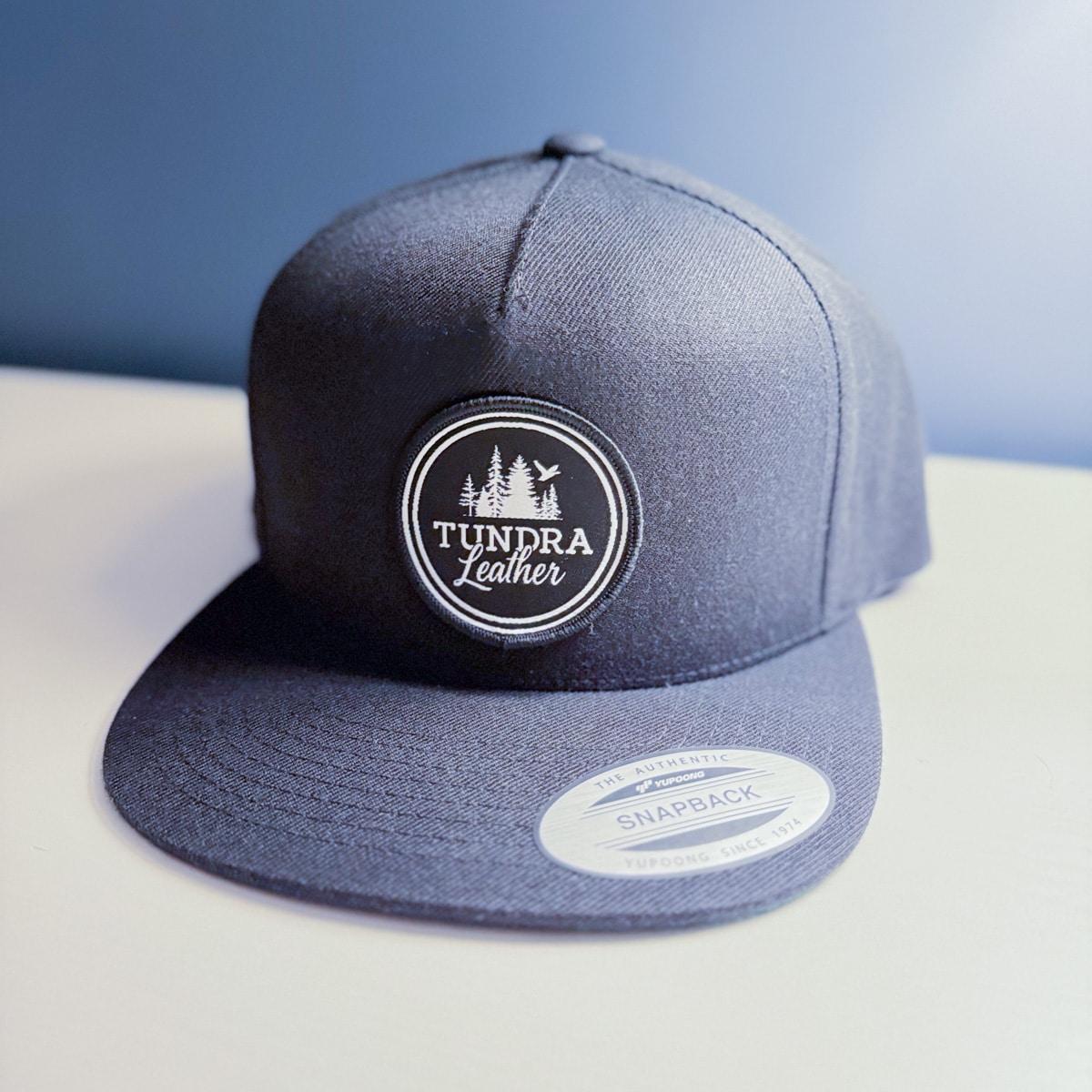 The Tundra Snapback features a structured, high-profile crown and flat brim for that timeless snapback shape. Front and center is our round Tundra Leather logo patch, pressed on for a clean, durable finish that holds up to daily wear.